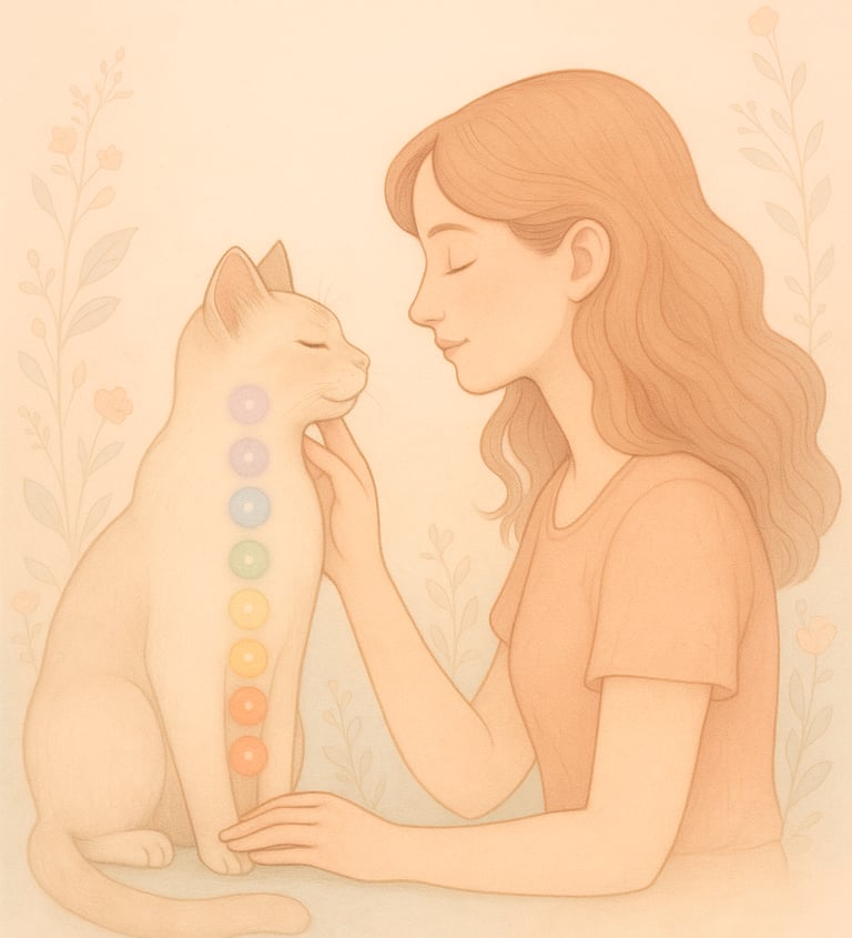 Nos compagnons possèdent un système énergétique complet : 8 chakras principaux et 7 corps subtils.